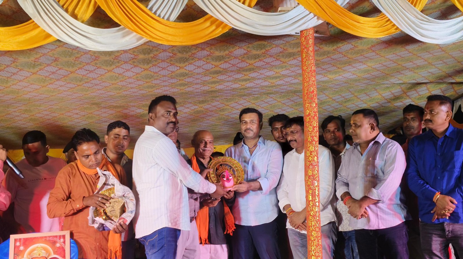 सरायकेला। साप्ताहिक गणेश पूजा महोत्सव के समापन अवसर पर बुधवार की रात कुकड़ू हाट मैदान में आयोजित कुंदन कुमार नाइट कार्यक्रम का उद्घाटन आजसू पार्टी के सुप्रीमो एवं पूर्व उपमुख्यमंत्री सुदेश कुमार महतो ने फीता काटकर किया। इस दौरान आयोजन समिति की ओर से उन्हें भगवान गणेश का मुखौटा भेंट कर सम्मानित किया गया।