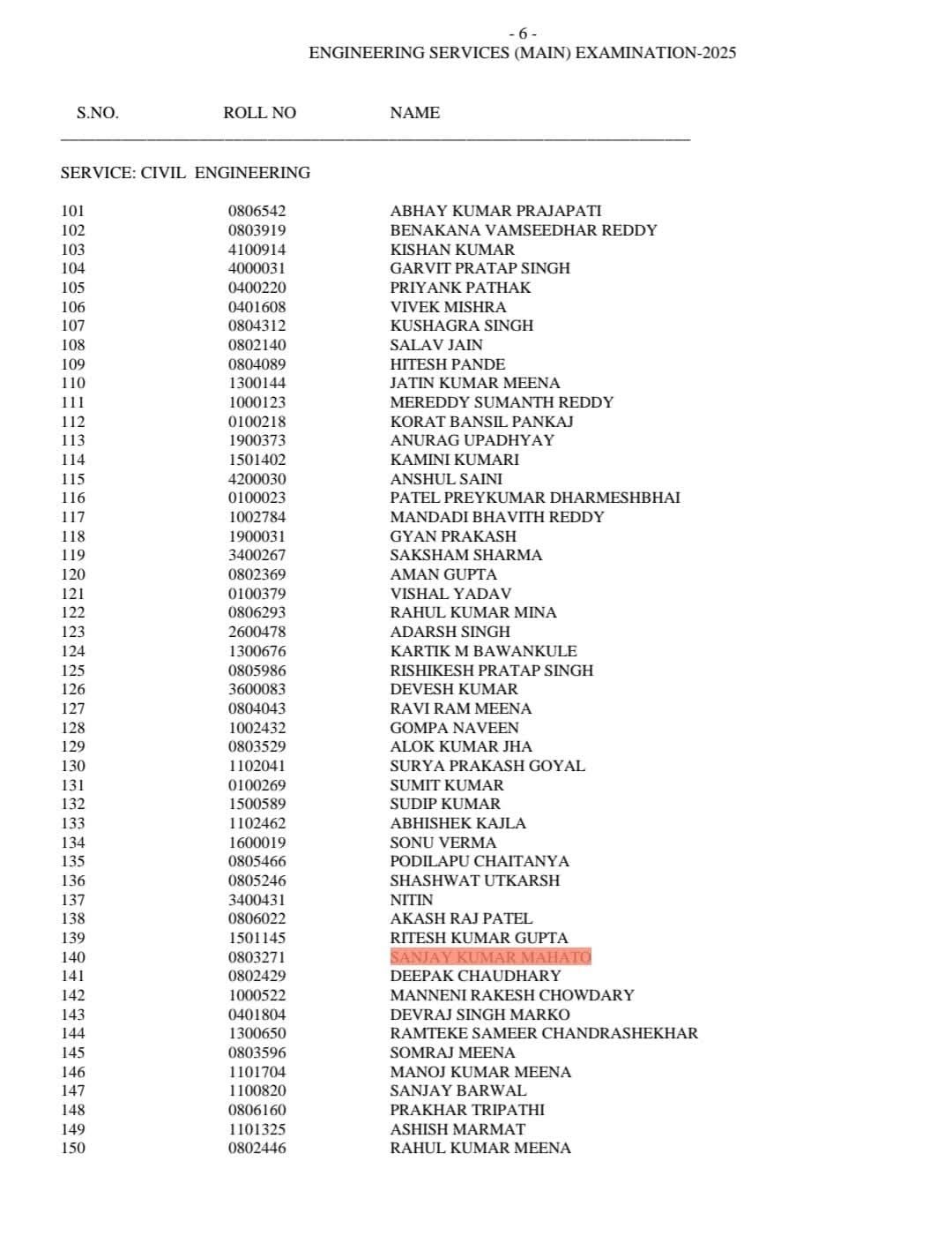 सरायकेला: गम्हरिया प्रखंड अंतर्गत बांधडीह गांव निवासी संजय कुमार महतो ने संघ लोक सेवा आयोग (UPSC) की प्रतिष्ठित इंजीनियरिंग सर्विसेज एग्जामिनेशन (ESE)–2025 में 140वीं रैंक प्राप्त कर उल्लेखनीय सफलता हासिल की है। उनकी इस उपलब्धि से न केवल परिवार बल्कि पूरे जिले में हर्ष का माहौल है। संजय ने निरंतर मेहनत, अनुशासन और आत्मविश्वास के बल पर यह मुकाम हासिल किया। उनकी सफलता यह संदेश देती है कि लगन और स्पष्ट लक्ष्य के साथ कठिन से कठिन परीक्षा भी पास की जा सकती है।संजय की यह उपलब्धि विशेषकर ग्रामीण क्षेत्र के युवाओं के लिए प्रेरणास्रोत है। JLKM युवा मोर्चा के केंद्रीय प्रवक्ता बिष्णु विद्रोही सहित जिलेवासियों ने उनकी सफलता पर बधाई देते हुए उज्ज्वल भविष्य की कामना की है।