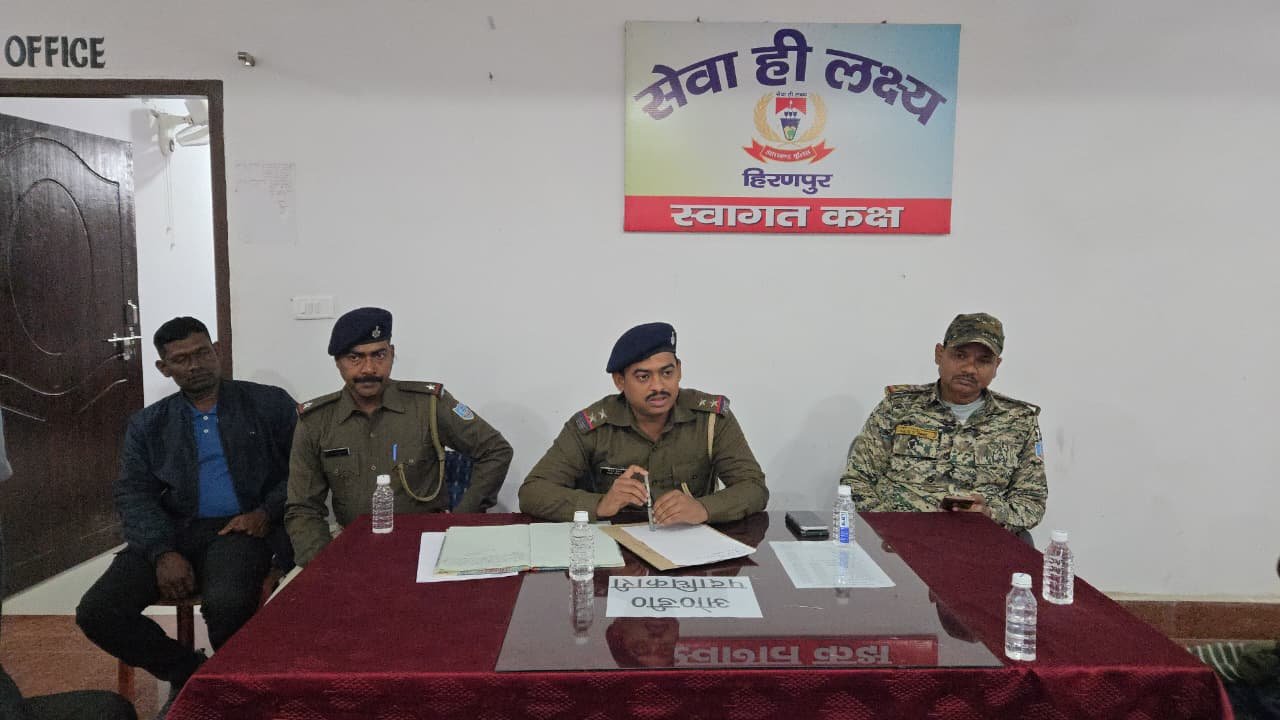 हिरणपुर थाना परिसर में आगामी क्रिसमस पर्व को शांतिपूर्ण, सौहार्दपूर्ण एवं अनुशासित वातावरण में मनाने को लेकर शांति समिति की बैठक आयोजित की गई। बैठक की अध्यक्षता थाना प्रभारी विनय कुमार ने की।
