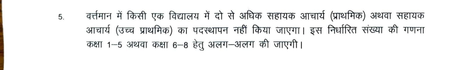 आरोप है कि पदस्थापना में विभागीय नियमों का पालन नहीं किया गया। नियम के अनुसार वर्तमान में किसी एक विद्यालय में प्राथमिक अथवा उच्च प्राथमिक स्तर पर दो से अधिक सहायक आचार्यों की पदस्थापना नहीं की जानी चाहिए, जबकि कई विद्यालयों में एक ही कक्षा स्तर पर पांच-पांच सहायक आचार्यों की पोस्टिंग कर दी गई है। वहीं कई विद्यालय ऐसे भी हैं, जहां एक भी सहायक आचार्य की पदस्थापना नहीं हुई है।