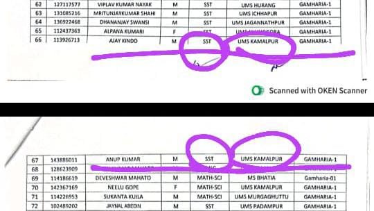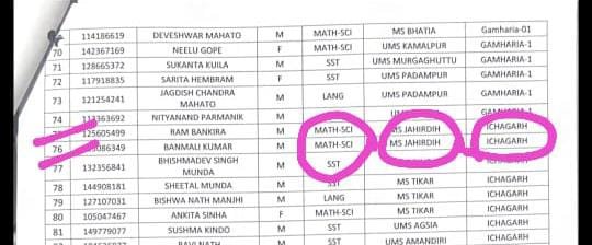 इसके अलावा कई विद्यालयों में एक ही विषय के दो-दो शिक्षकों की पदस्थापना कर दी गई है। उदाहरण के तौर पर ईचागढ़ प्रखंड के मध्य विद्यालय जाहिरडीह में गणित-विज्ञान विषय में दो शिक्षकों की एक ही विद्यालय में पोस्टिंग की गई है। वहीं गम्हरिया प्रखंड के उच्च मध्य विद्यालय कमलपुर में सामाजिक विज्ञान विषय में दो शिक्षकों की पदस्थापना की गई है।