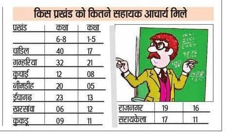 सरायकेला : सरायकेला-खरसावां जिला शिक्षा स्थापना समिति द्वारा सरायकेला-खरसावां जिले में नव नियुक्त 292 सहायक आचार्यों का पदस्थापन कर विद्यालयों का आवंटन किया गया है। इसमें कक्षा छह से आठ के लिए गणित, विज्ञान, सामाजिक विज्ञान व भाषा विषय के कुल 178 सहायक आचार्य तथा कक्षा एक से पांच के लिए 114 सहायक आचार्य शामिल हैं। पदस्थापना के आंकड़ों के अनुसार कक्षा छह से आठ में सबसे अधिक 40 सहायक आचार्यों का पदस्थापन चांडिल प्रखंड में किया गया है, जबकि सबसे कम 6 सहायक आचार्यों का पदस्थापन खरसावां प्रखंड में हुआ है। वहीं कक्षा एक से पांच के लिए सबसे अधिक सहायक आचार्य गम्हरिया प्रखंड को मिले हैं, जहां 21 सहायक आचार्यों की पदस्थापना की गई है। सबसे कम 5 सहायक आचार्यों की पदस्थापना नीमडीह प्रखंड में हुई है।