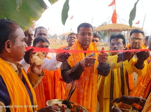 सोनाहातू: सोनाहातू प्रखंड क्षेत्र अंतर्गत सिल्ली-रांगामाटी मुख्य सड़क पर जिलिंगसेरेंग डोमड़ा नदी के समीप आयोजित श्री श्री अखंड हरिनाम नवकुंज महायज्ञ का उद्घाटन रविवार को सोनाहातू थाना प्रभारी प्रेम प्रदीप कुमार ने फीता काटकर किया। उद्घाटन के साथ ही नवकुंज नाम महायज्ञ का विधिवत शुभारंभ हुआ।