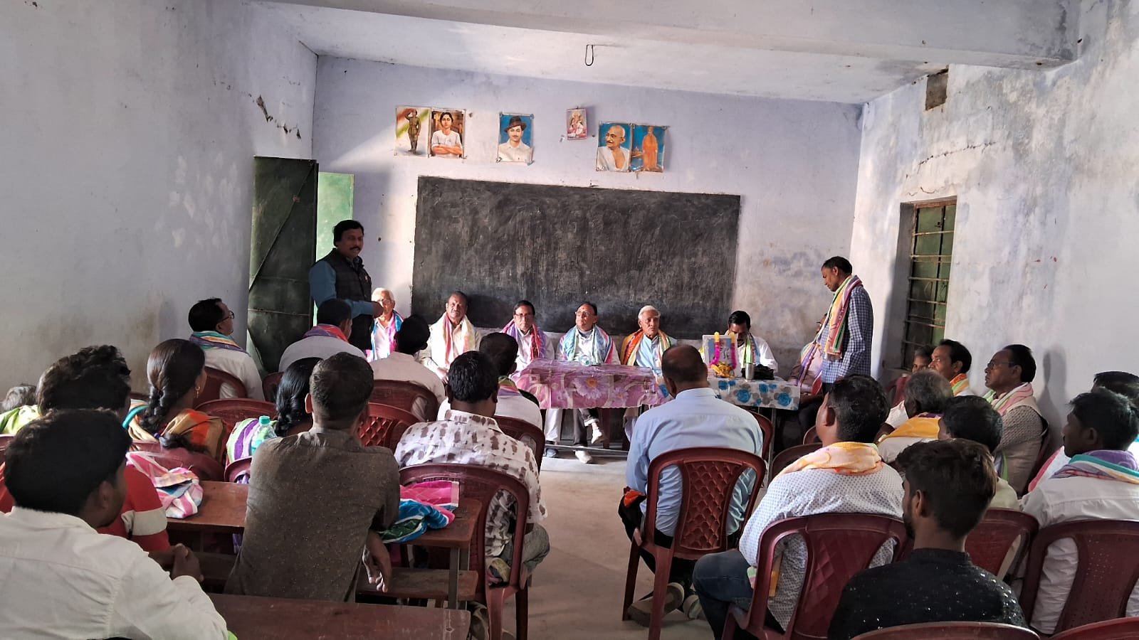 ईचागढ़ (चंदन कुमार महतो): सोमवार को प्रखंड क्षेत्र स्थित शहीद अजित धनंजय महतो विद्यानिकेतन, चोगा में स्थानीय जनप्रतिनिधियों, बुद्धिजीवियों एवं अभिभावकों के साथ एक महत्वपूर्ण बैठक का आयोजन किया गया। कार्यक्रम की अध्यक्षता विद्यालय प्रबंधन समिति के अध्यक्ष उमाकांत महतो ने की। बैठक की शुरुआत निवर्तमान विद्यालय सचिव स्व. विजय महतो के चित्र पर माल्यार्पण कर श्रद्धांजलि अर्पित करने के साथ हुई। उनके आत्मा की शांति के लिए एक मिनट का मौन रखा गया। इसके पश्चात विद्यालय परिवार की ओर से उपस्थित अतिथियों को अंगवस्त्र देकर सम्मानित किया गया। बैठक में विद्यालय के सर्वांगीण विकास को लेकर विस्तार से चर्चा की गई। प्रबंधन की ओर से विद्यालय की मूलभूत समस्याओं से स्थानीय जनप्रतिनिधियों, बुद्धिजीवियों एवं अभिभावकों को अवगत कराया गया तथा उनके सहयोग की अपेक्षा व्यक्त की गई।
