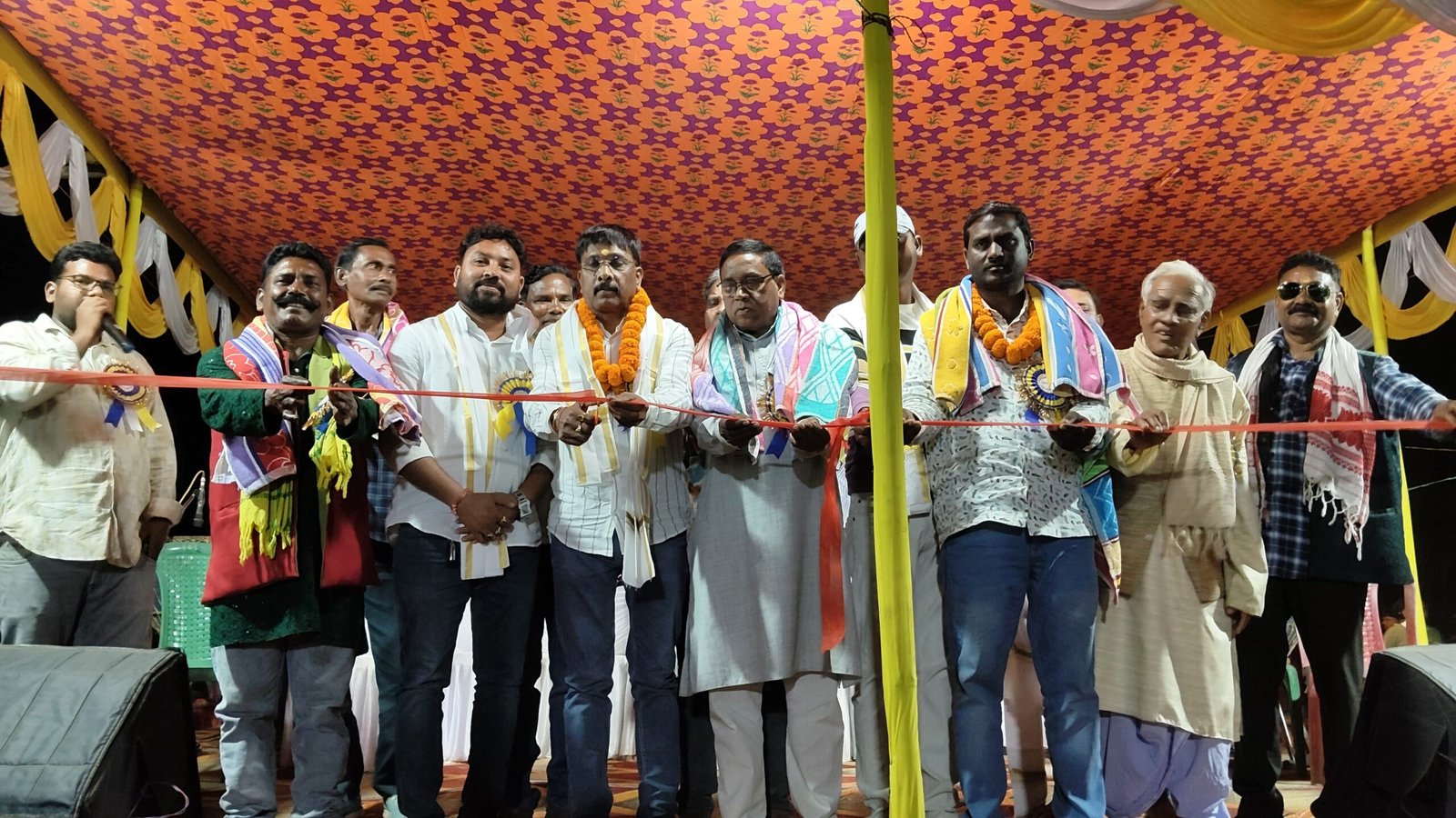 ईचागढ़ (चंदन कुमार महतो): ईचागढ़ प्रखंड क्षेत्र के चोगा गांव में शनिवार को होली पर्व और बसंत ऋतु के आगमन के अवसर पर नव युवक संघ चोगा की ओर से भव्य सांस्कृतिक कार्यक्रम एवं छऊ नृत्य का आयोजन किया गया। कार्यक्रम में क्षेत्र के सैकड़ों ग्रामीणों की भीड़ उमड़ी और देर शाम तक लोग रंगारंग प्रस्तुतियों का आनंद लेते रहे। कार्यक्रम का उद्घाटन आजसू पार्टी के केंद्रीय महासचिव हरेलाल महतो और ईचागढ़ प्रखंड के उपप्रमुख दीपक कुमार साव ने फीता काटकर किया। इस मौके पर उन्होंने होली पर्व की शुभकामनाएं देते हुए कहा कि इस तरह के सांस्कृतिक कार्यक्रमों से क्षेत्र की परंपरा और लोक संस्कृति को बढ़ावा मिलता है तथा नई पीढ़ी को अपनी संस्कृति से जुड़ने का अवसर मिलता है।