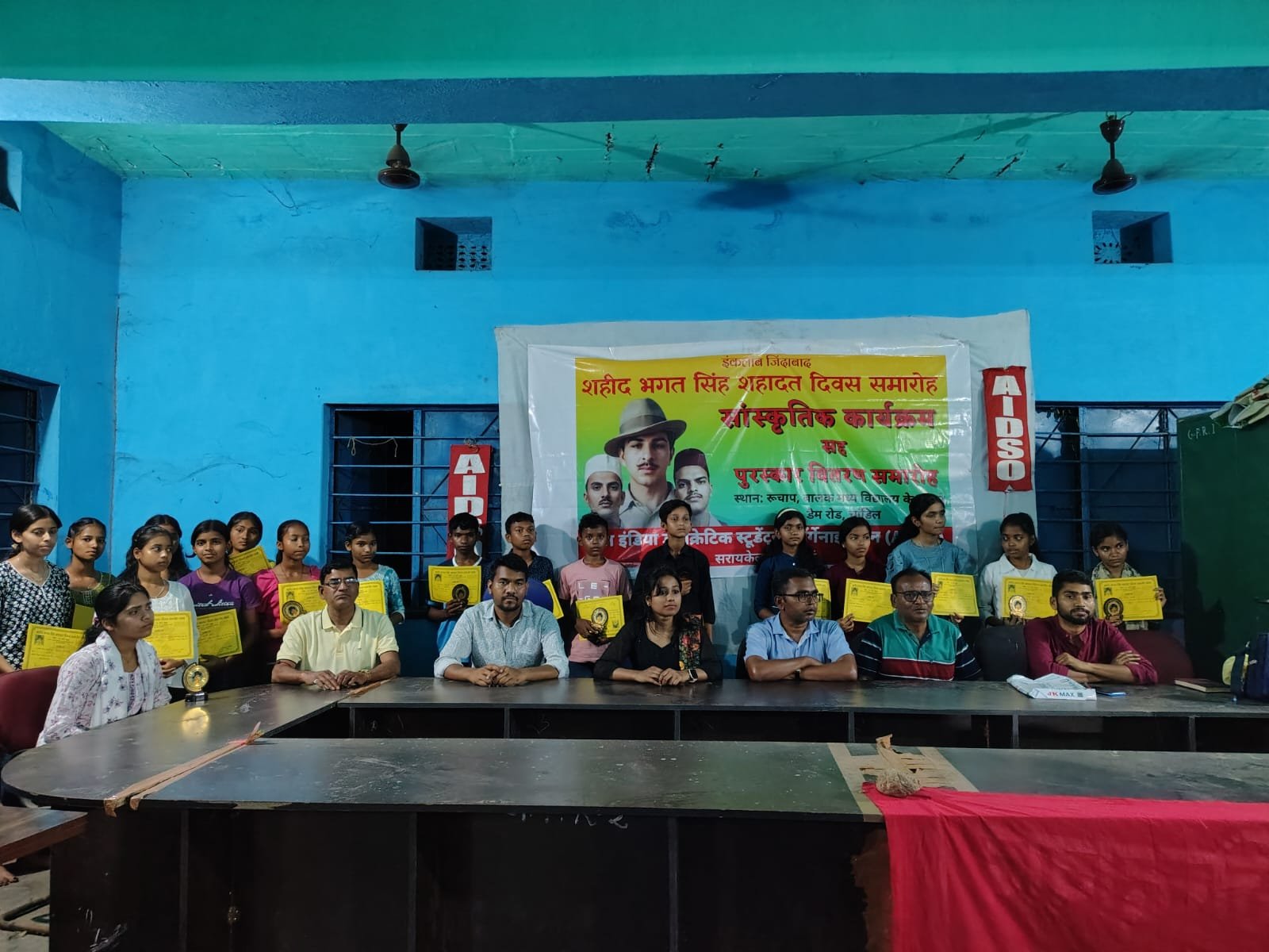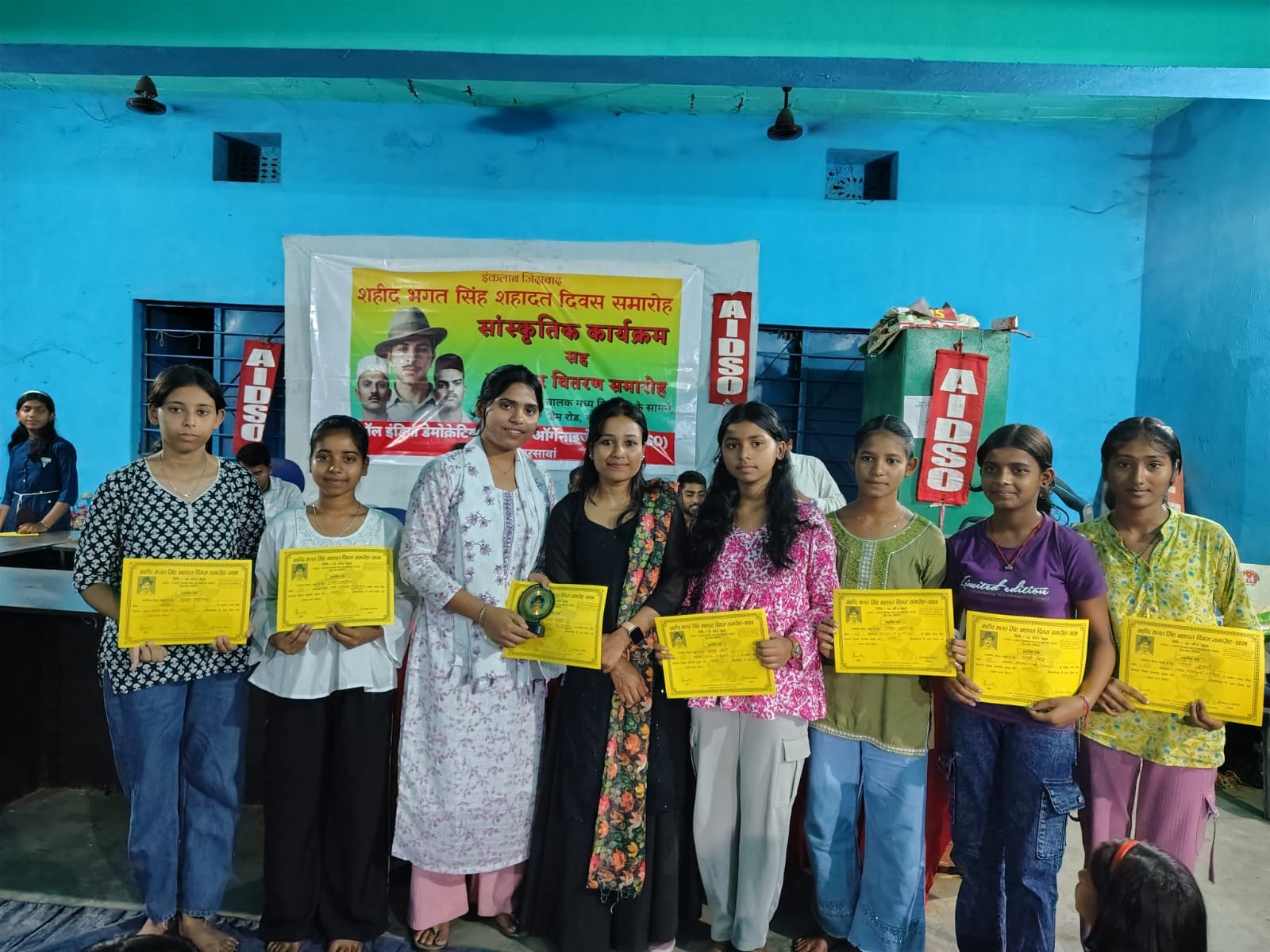 चांडिल: शहीद-ए-आजम भगत सिंह, सुखदेव और राजगुरु के शहादत दिवस के अवसर पर ऑल इंडिया डेमोक्रेटिक स्टूडेंट्स ऑर्गेनाइजेशन की ओर से 3 अप्रैल को सांस्कृतिक कार्यक्रम सह पुरस्कार वितरण समारोह का आयोजन किया गया। कार्यक्रम डैम रोड स्थित मध्य विद्यालय के समीप मैदान तथा रुचाप पंचायत भवन में संपन्न हुआ। इस अवसर पर विभिन्न विद्यालयों के कक्षा 6 से 9 तक के छात्रों के बीच सामान्य अध्ययन, गायन एवं दौड़ प्रतियोगिता आयोजित की गई, जिसमें उत्कृष्ट प्रदर्शन करने वाले प्रतिभागियों को पुरस्कृत किया गया। कार्यक्रम में बड़ी संख्या में छात्र-छात्राएं और अभिभावक उपस्थित रहे।