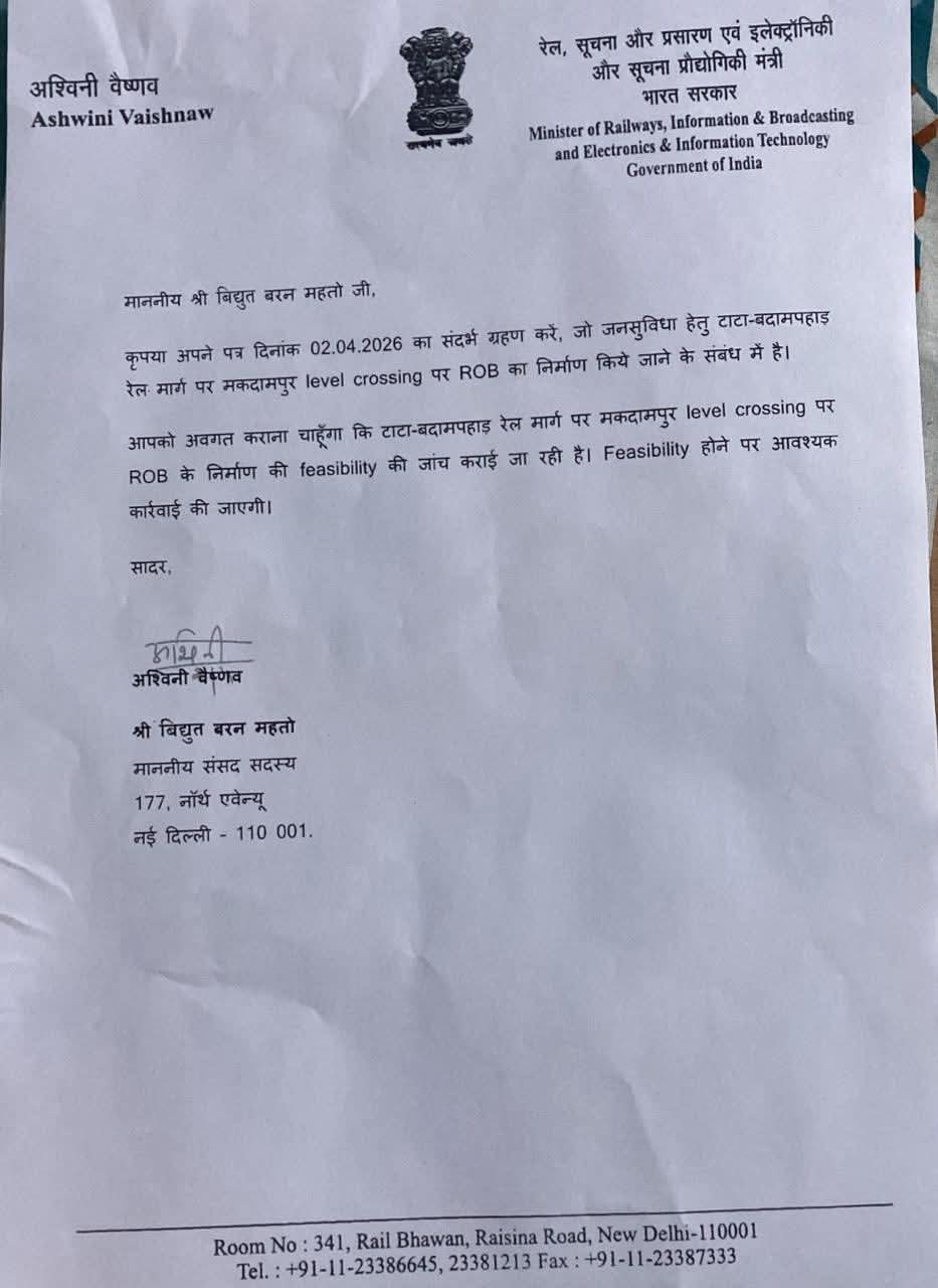 वहीं, टाटा-बादामपहाड़ रेल मार्ग पर मकदमपुर लेवल क्रॉसिंग पर ओवरब्रिज निर्माण की दिशा में भी पहल शुरू हो गई है। इसके लिए फीजिबिलिटी स्टडी कराई जा रही है। ओवरब्रिज बनने से क्षेत्र में जाम की समस्या से लोगों को काफी राहत मिलने की उम्मीद है।