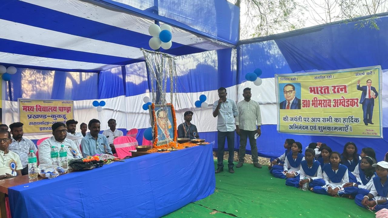 सरायकेला : संविधान निर्माता, भारत रत्न डॉ. भीमराव आम्बेडकर की 135वीं जयंती कुकड़ू प्रखंड क्षेत्र के मध्य विद्यालय पांड्रा में धूमधाम से मनाई गई। कार्यक्रम का शुभारंभ दीप प्रज्वलित कर किया गया, जिसके बाद केक काटकर जयंती मनाई गई। इस अवसर पर शिक्षकों एवं अतिथियों ने बाबा साहब के चित्र पर पुष्प अर्पित कर श्रद्धांजलि दी। विद्यालय के विद्यार्थियों ने गीत, भाषण एवं नृत्य के माध्यम से रंगारंग सांस्कृतिक कार्यक्रम प्रस्तुत किए, जिसमें उनके जीवन, संघर्ष और सामाजिक योगदान को दर्शाया गया।
