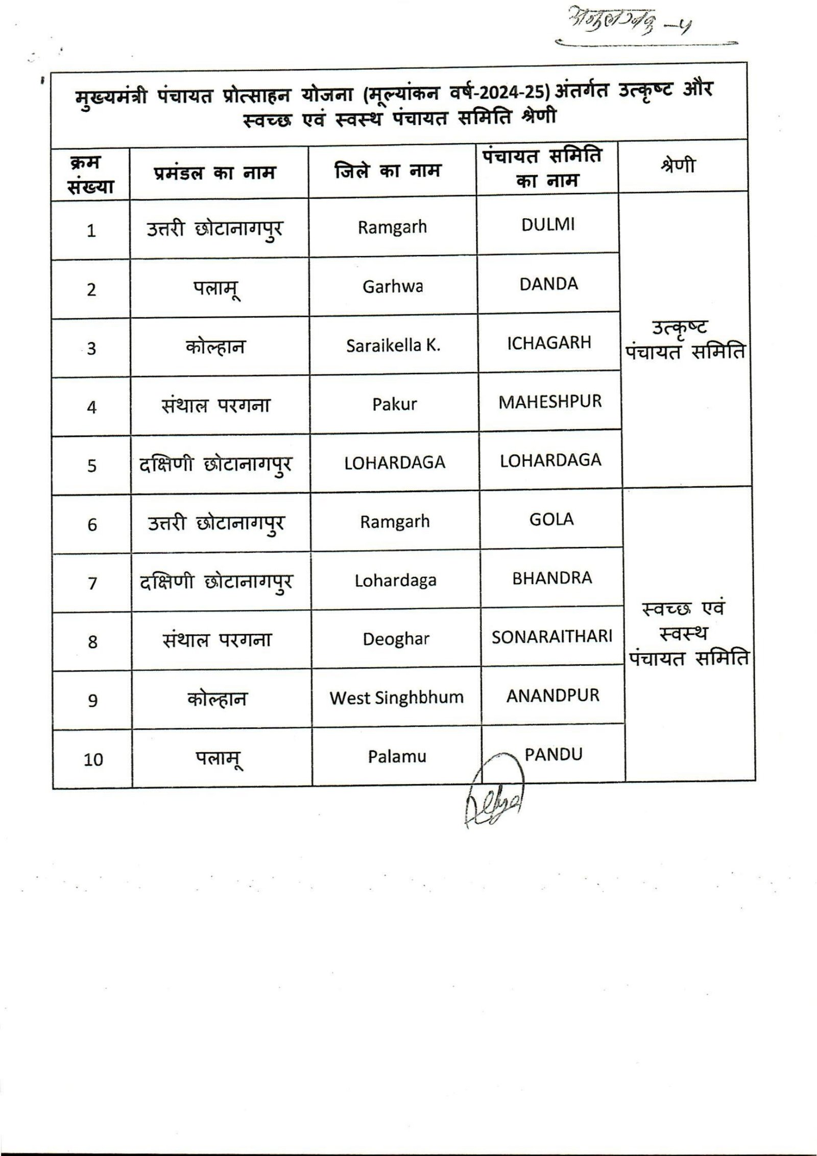 सरायकेला/रांची: राष्ट्रीय पंचायती राज दिवस के अवसर पर मुख्यमंत्री पंचायत प्रोत्साहन योजना 2024-25 के तहत झारखंड के कई पंचायतों को सम्मानित किया जाएगा। इस क्रम में सरायकेला-खरसावां जिले के ईचागढ़ प्रखंड की ईचागढ़ पंचायत समिति को कोल्हान का पहला और राज्य का तीसरा उत्कृष्ट पंचायत समिति श्रेणी में चयनित किया गया है। उत्कृष्ट ग्राम पंचायत श्रेणी में बोड़ाम प्रखंड की पोखरिया, गम्हरिया की छोटा गम्हरिया तथा मनोहरपुर की बरंगा पंचायत का चयन हुआ है। स्वच्छ एवं स्वस्थ ग्राम पंचायत श्रेणी में जमशेदपुर की बेको, कुचाई की अरूवां और गोईलकेरा की बारा पंचायत शामिल हैं। वहीं श्रेष्ठ ग्रामसभा श्रेणी में पलाशबनी, दक्षिण ईचड़ा, दुदरा, नौगांव, माटकोबेड़ा और घोड़ाबांधा पंचायतों को चयनित किया गया है।